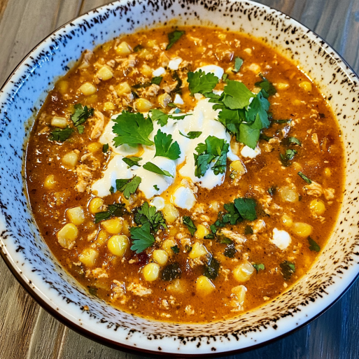 Now you’re ready to serve your Street Corn Chicken Chili! Enjoy it with optional toppings like extra cilantro or lime wedges for an added kick.